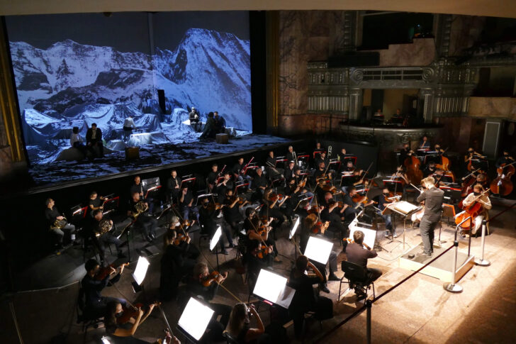 Bien sûr, les contraintes sanitaires demeurent, ce qui donne lieu en particulier au placement de l'orchestre dans les six premiers rangs de la salle, au lieu de la fosse. Cette disposition occasionne quelques cafouillages pour l'installation du public, malgré les efforts des équipes opérationnelles. Les chœurs, quant à eux, demeurent placés en fond de scène derrière une paroi transparente, bien que les scènes de foule sans foule soient choquantes, surtout quand il s'agit d'un Grand Opéra. Mais était-il pour autant besoin de nous infliger une aussi piètre mise en scène ?