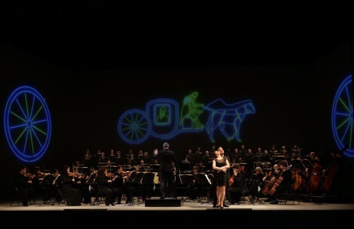 Le dispositif scénique imaginé par Jean-Philippe Clarac et Olivier Deloeuil ne sort pas réellement l'opéra d'une version de concert. Les projections de figures graphiques entre le chœur et l'orchestre évoquant d'assez loin l'art de Goya ont le mérite d'apporter un caractère ludique à la soirée par un décryptage simple du livret par le jeune public. Pour autant, cela n'apporte rien de réellement passionnant à une version de concert où le seul talent des artistes bien dirigés suffit à la réussite de la soirée. Et du talent, il y en a !