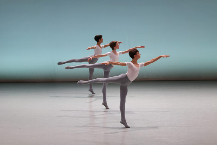 Pas de spectacle, mais les traditionnelles Démonstrations des élèves de l'école de danse à l'Opéra Garnier, de retour après deux années d'interruption pour cause de grève, puis de Covid. Ici, la répartition entre filles et garçons et la progression par division est bien visible et rythme le déroulé de l'après-midi. Qui commence par la troisième division garçons. Exercices de dégagés, tours, petite batterie, grand saut et final, le cours au milieu se déroule à un rythme rapide. Le professeur, Christophe Duquenne, très didactique, insiste beaucoup sur la tenue du dos et la ligne des épaules. Pour la troisième division filles, Fanny Gaïda propose un exercice de relevés sur pointes au milieu, deux tours en dehors et en dedans, et une petite batterie, le tout au rythme soutenu d'un ragtime. La professeure insiste sur le fait de monter la taille et de baisser les épaules.