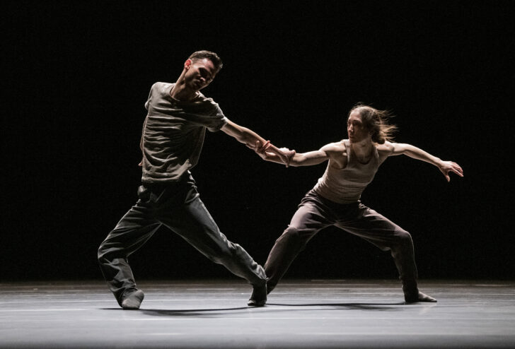 Ces soirées au Théâtre de Champs-Elysées clôturent une tournée européenne passée par Stockholm, Saint-Pétersbourg, Moscou et Oslo. Le programme débute sur la délicate musique de Schubert avec Impromptus, un pas de deux non moins subtil signé Sasha Waltz. Grande économie de moyens pour ce duo ramassé, aux portés audacieux où Claudia Serpa Soares, danseuse de la Shasha Waltz & Guests adopte une position presque fœtale. Genoux pliés bras tendus devant elle, elle est portée par derrière par son partenaire Gyung Moo Kim, également interprète de la compagnie berlinoise.