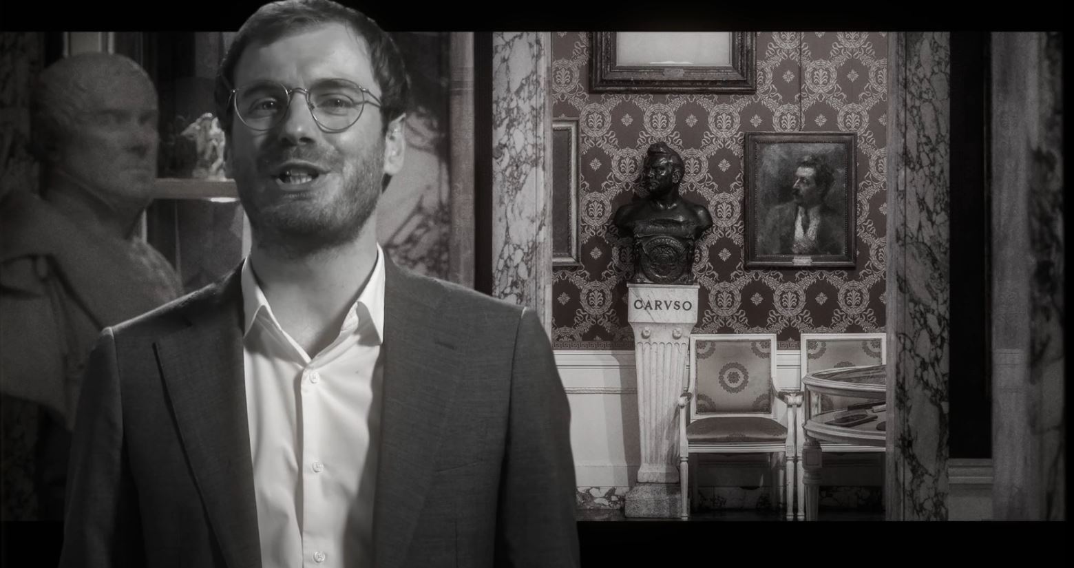 Par la suite, la chanson napolitaine est naturellement mise à l'honneur grâce au succès que Caruso a initié pour ce répertoire auprès des plus grands ténors, Corelli et Di Stefano compris. La visite se termine sur la scène principale par une vidéo de « l'impossible concert » dans laquelle les interprétations des trois protagonistes dans l'extrait de Pagliacci de Leoncavallo, « Vesti la giubba », sont comparées. La forme, son accessibilité, son approche didactique sans niaiserie, offrent au visiteur un bel outil pour venir encore, même virtuellement, à l'opéra.