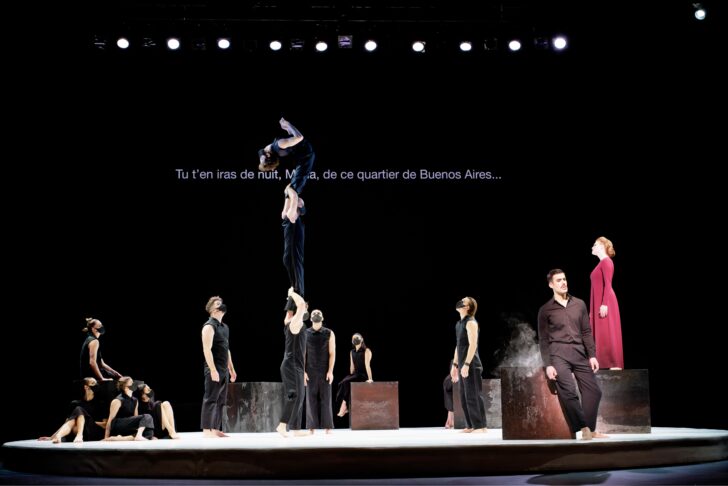 Pas besoin d'apprécier le tango pour apprécier le spectacle lyonnais car la première bonne idée de Lifschitz est d'afficher, dès le lever du rideau (via, au son d'une musique « industrielle », le solo déstructuré d'une danseuse sans cavalier relayé par une vidéo qui clame en toutes lettres: « pour en finir avec les clichés associés au tango »), son envie de s'en passer. Une audacieuse proposition, qui n'aurait pas été sans déplaire à Piazzolla lui-même, qui n'a de cesse de confronter l'incontournable genre argentin aux modèles classiques (fugue et toccata dans l'operita !), ainsi qu'à Gidon Kremer, grand passionné de María, qui, avec l'aide du compositeur Leonid Desyatnikov, nettoya à l'os, dans son splendide enregistrement de 1998, une partition abîmée par ses reprises, et avait même enseigné à cette occasion : « La valeur de María de Buenos Aires ne repose pas entièrement dans le concept du tango. »