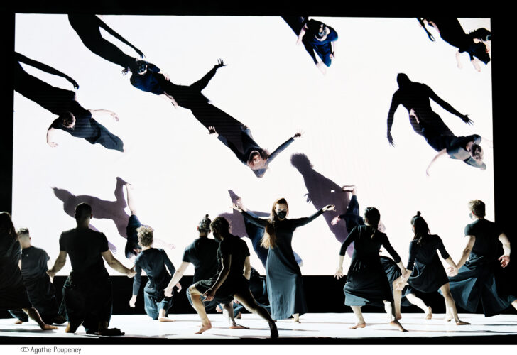 Yaron Lifschitz peut alors inviter les chanteurs et les dix acrobates de sa compagnie Circa sur le disque blanc tournant sur la platine de la scène lyonnaise : un espace rotatif à l'intemporalité fascinante qui évoque d'emblée le « camembert » du Neues Bayreuth des frères Wagner. Les performances circassiennes n'évitant pas toujours la monotone répétitivité de numéros souvent vus ailleurs, sont heureusement relayées par une scénographie de toute beauté dont une superbe cascade de nuées. Des plans de type « la scène vue du ciel » offrent de fascinants effets de plongées sur l'action vue alors sous plusieurs angles : perspectives et ombres portées se brouillent de la plus esthétique façon. Dommage que le procédé, riche d'un infini de possibilités, reste relativement sous-employé. Les plans volés par une caméra embarquée plongeant dans le fond du cercueil de Maria engendrent d'autres motifs d'émotion maximale. Magnifiée par les lumières de Lutz Deppe, cette« poésie théâtrale » bien accordée au « théâtre poético-musical » rêvé par le compositeur et son librettiste, souffre hélas quelque peu de la gestion forcée de masques pour tous qui, même s'ils sont parfaitement manipulés (Wallis Giunta l'enlève et le remet avec une vraie chorégraphie des mains rendant quasi-imperceptible la pesante injonction), sont un comble pour un scénario dont la sensualité des corps (visages compris) est une donnée essentielle.