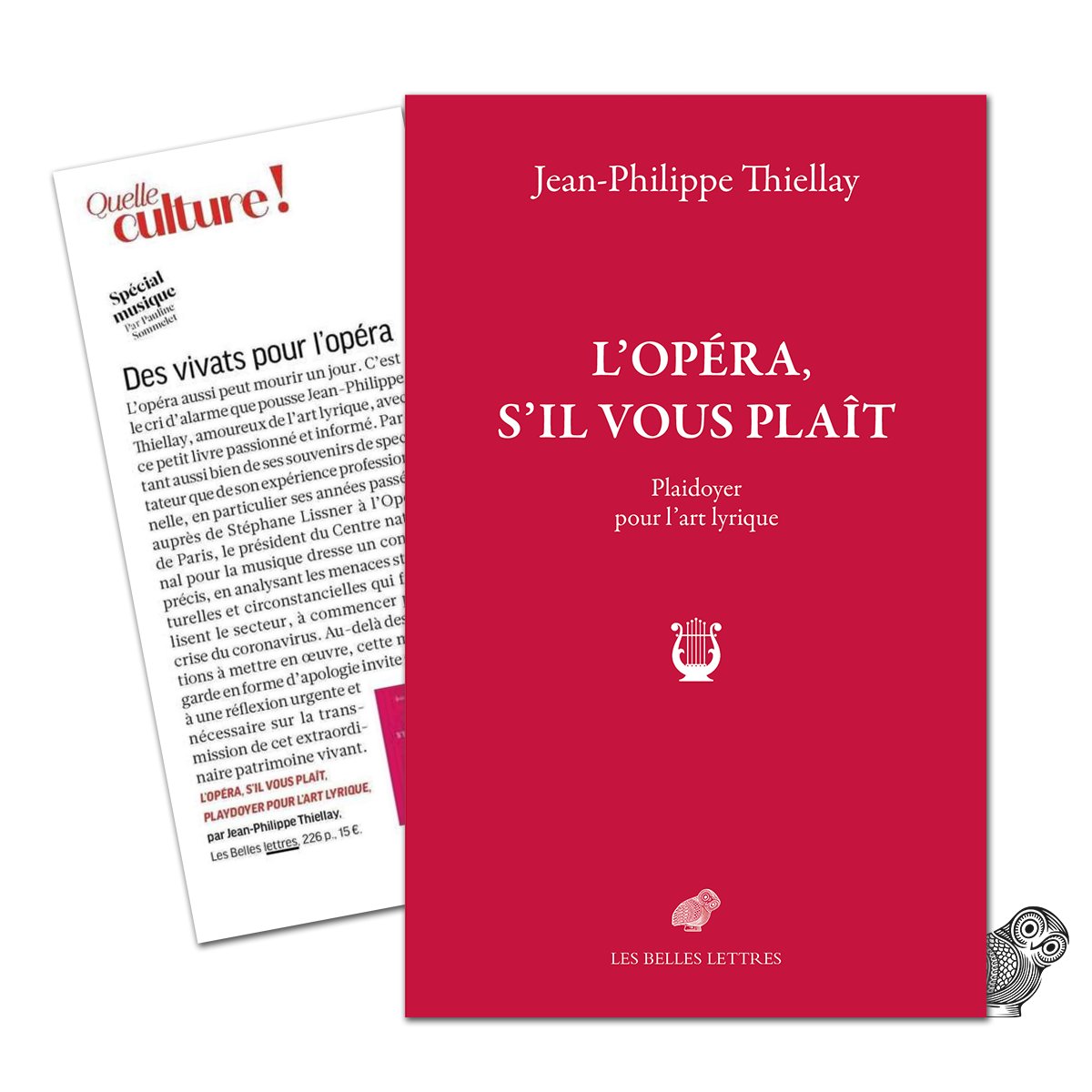Déclaration d'amour, cri d'alarme angoissé et boite à idées sur ce qu'il convient de faire pour éviter le naufrage, L'opéra s'il vous plait de Jean-Philippe Thiellay se veut un plaidoyer pour l'art lyrique dans un climat de tous les dangers.
