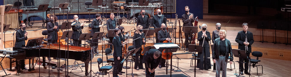 9-II-2022. Philippe Hurel (né en 1955): En spirale pour clarinette (CM) ; Allain Gaussin (né en 1943) : Par delà… pour clarinette, piano et percussions (CM) ; Tristan Murail (né en 1947) : L’esprit des dunes pour 11 instruments et sons de synthèse ; Désintégrations pour ensemble et sons de synthèse ; George Crumb (1929-2022) : Eine kleine Mitternacht Musik- Rumination on « Round Midnight » by Thelonious Monk (extraits), pour piano ; Clara Olivares (née en 1993) : Vers mes cieux, vos regards pleins d’ivresse (CM). Jérôme Comte, clarinette ; Jens McManama, cor ; Ensemble Intercontemporain ; Étienne Démoulin, Andrew Gerzso, Serge Lemouton et Leslie Stuck, réalisation informatique musicale Ircam ; direction : Duncan Ward