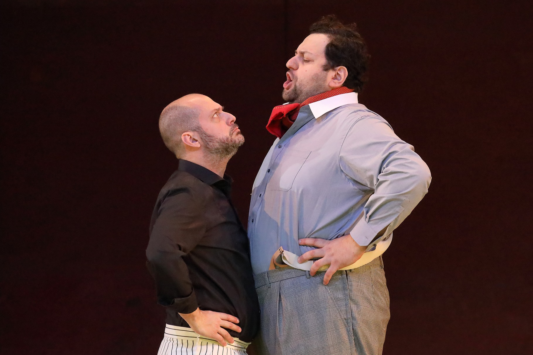 La distribution masculine, fort heureusement, est plus honorable, à défaut d'enthousiasmer – mais que peut faire un chanteur quand il n'a pas le soutien de l'orchestre ? Le nom le plus connu de la distribution est Alex Esposito en Selim, et il assure l'essentiel, tout comme Misha Kiria en efficace mari ridicule ; l'aisance de Michele Angelini en amant supplanté, le poète rusé de Nikolai Borchev ont chacun de grandes qualités, mais ceci vaut pour tous : à chaque instant de la soirée ou presque, on a le sentiment que, dans un contexte plus favorable, chacun pourrait offrir tellement mieux, en matière d'engagement scénique, de présence vocale, de comique musical. Quoi de plus frustrant que de tels interprètes quand ils sont bridés par la routine ? Rossini comique, décidément, c'est une chose sérieuse qui ne peut être laissée à elle-même.