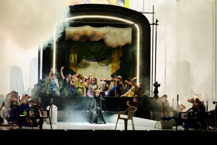 Berne. BühnenBern. 19-II-2022. Wolfgang Amadeus Mozart (1756-1791) : Idomeneo, opéra seria en trois actes et un prologue sur un livret de Giambattista Varesco. Mise en scène : Miloš Lolić. Costumes : Jelena Miletić. Décors : Wolfgang Menardi. Lumières : Bernhard Bieri. Dramaturgie : Reiner Karlitschek. Avec : Attilio Glaser, Idomeneo ; Evgenia Asanova, Idamante ; Giada Borrelli, Ilia ; Masabane Cecilia Rangwanasha, Elettra ; Filipe Manu, Arbace/Gran Sacerdote ; Matheus França, une voix ; Christian Valle, une voix. Chœur du Bühnen Bern (chef des chœurs : Zsolt Czetner) Berner Symphonieorchester. Direction musicale : Nicholas Carter