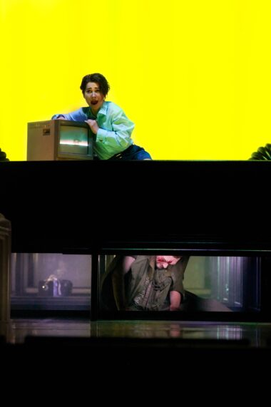 Pour sa première mise en scène d'opéra, ne donne malheureusement pas une lecture claire de l'œuvre. En tentant de présenter cette intrigue comme un théâtre dans le théâtre, hormis le déjà-vu de la démarche, il n'en domine pas le parti pris. On se triture les méninges pour comprendre qui est en droit de monter sur la scène et qui ne l'est pas. Dans ce spectacle, chacun, du metteur en scène à la costumière en passant par le décorateur semble y aller de son opinion sans qu'on y décèle une idée directrice commune apte à éclaircir le propos.