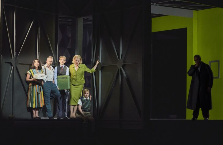 « Je ne suis pas heureuse !… » se lamente Mélisande à plusieurs reprises. Si cela pouvait vous consoler, ma chère Mélisande, le public non plus n'était pas très heureux à l'issue de cette production. On peut très bien admettre que la jalousie de votre mari Golaud (Robin Adams) envers son demi-frère Pelléas le ronge au-delà du raisonnable mais, ce n'est pas une raison de hurler de la sorte dès la deuxième mesure jusqu'aux dernières scènes. On attend à ce que ses colères s'énoncent dans un idiome stylistique de l'opéra français, pas dans celui d'une bagarre entre des dieux et des demi-dieux germaniques. Malheureusement, en poussant à l'extrême sa voix puissante le baryton anglais donne à son personnage un aspect fruste excessif. Fallait-il vraiment se fâcher de la sorte ? Après tout, Pelléas (Michał Prószyński) semblait plus intéressé par un radiateur électrique qu'il tenait dans ses bras comme un trésor que par l'envie de séduire sa belle-sœur. Écrit pour un baryton léger, sa voix de ténor est aujourd'hui trop légère pour le registre grave du rôle. Quant au grand-père, Arkel (Mattheus França), en fringant colosse guéri de sa cécité « debussyenne », son immense tube vocal le porte à s'exprimer dans une langue inconnue qui, étrangement, semble convenir à chaque membre de la famille puisque chacun, y compris le petit dernier Yniold (Orsolya Nyakas), semble à l'aise dans ce dialecte patriarcal. La preuve, presque tous le comprennent et le pratiquent. Parce que le spectateur francophone, assistant à ce qu'il pense être un opéra français, se trouve rapidement obligé de lire les surtitres en allemand pour saisir ce qui se dit en français sur scène.