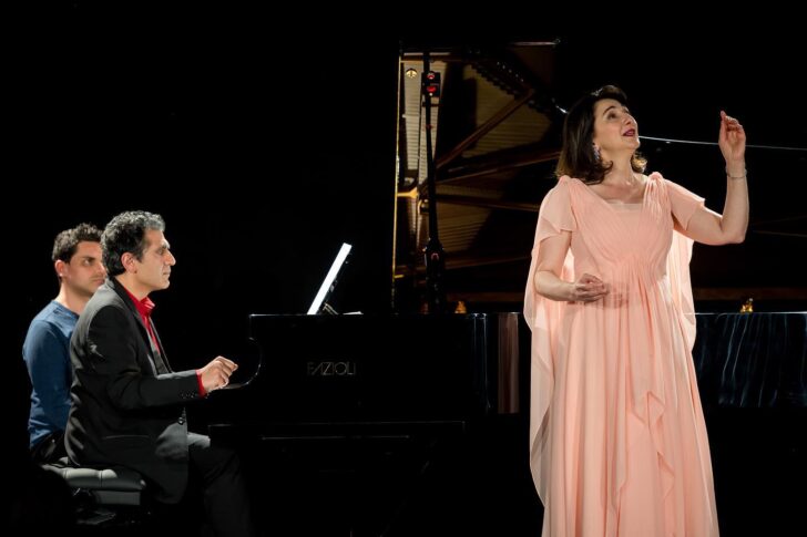Le lendemain sur le plateau du One de Monte-Carlo, ce sont deux interprètes arméniens, la soprano Karine Babajanyan et le pianiste Vardan Mamikonian qui défendent un programme exigeant associant le répertoire arménien (Komitas mais aussi Romanos Melikian et Eduard Abrahamyan) et Robert Schumann (L'amour et la vie d'une femme) ainsi que trois lieder de jeunesse de Strauss, Allerseelen, Morgen et Zueignung, abordant la même thématique amoureuse. La voix est longue et le timbre généreux, doublés d'une technique irréprochable pour nuancer la palette de couleurs du mélos arménien qui n'est pas sans évoquer (Tsirani Tsar) la manière arabo-andalouse d'un Falla. Moins convaincante dans le cycle de Schumann où il nous manque les nervures de la langue allemande, Karine Babajanyan sert avec beaucoup de sensibilité et de volupté la ligne straussienne où se déploie un soprano dramatique somptueux, fermement soutenu par un piano toujours sous contrôle. En sus, le génial Loosin yelav extrait des Folksong de Berio, mélodie arménienne écrite pour Cathy Berberian et chantée ce soir par notre interprète avec la même chaleur et lumière dans la voix.