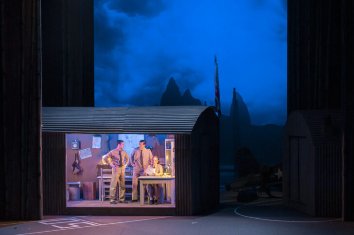À Toulon, on a l'impression de revenir à la maison tant sont intactes les qualités déjà à l'œuvre dans Sweeney Tod et Wonderful Town : la garde-robe sexy du regretté Frédéric Olivier (auquel hommage est rendu aux saluts devant une tombée de costumes descendue des cintres), les éclairages bleutés de Marc-Antoine Vellutini, les vidéos changeantes d'Olivier Meyer, les décors de Luc Londiveau ressuscitant le dépaysement d'une Polynésie rêvée (la demeure du planteur, le QG militaire, la mer, l'île mystérieuse de Bali Ha'i dans la brume…), l'énergie pétaradante des chorégraphies de Johan Nus, la fluidité de la mise en scène d'Olivier Bénézech avec ses chanteurs élargissant le cadre de scène jusqu'à un proscenium près du public. Connaissance familière, Jasmine Roy, explosive Bloody Mary chargée de canaliser la testostérone en goguette (torride Bali Ha'i), mais aussi mère éclaboussée par les amours « internationaux » de sa fille Liat. Autre boule d'énergie, quasi-animateur de la soirée, franchissant avec beaucoup de drôlerie la frontière travestie lors d'un Thanksgiving au cabaret, l'athlétique Thomas Boutilier, aussi peu avare de sa voix que de ses biceps est le Seabee (surnom donné aux CB – Construction Battalions – de l'US Navy) Luther Billis. L'Américain William Michals fait d'Émile de Becque un beau baryton crooner (impeccable « Some enchanted evening »), Kelly Mathieson épouse avec beaucoup de subtilité les états d'âmes changeants de Nellie. Mike Schwitter est Joe, le jeune et craquant lieutenant gâté par une vie trop vite conclue par la mort. Romane Gence (Liat) lui donne la plus touchante des répliques. Scott Emerson et Sinan Bertrand complètent cette équipe déchaînée (et sonorisée) dirigée avec une imperturbable maîtrise par Larry Banks.