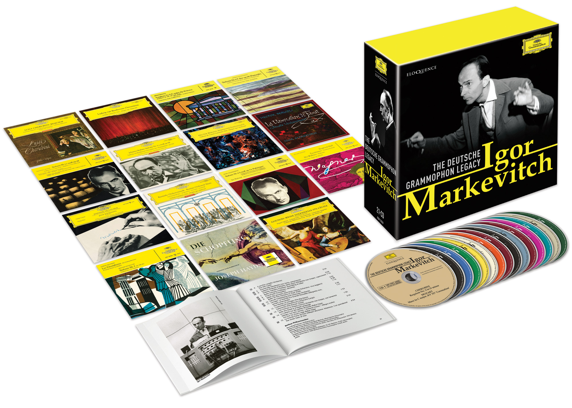 Rien dans cle coffret Deutsche Grammophon Eloquence n'est inconnu. En revanche, avoir regroupé ces bandes dont il faut mentionner l'excellente qualité des reports et la présentation agréable, dans les pochettes d'origine mérite d'être salué. Du côté des curiosités, on s'étonne aujourd'hui encore que Markevitch ait gravé les symphonies n° 3 et n° 4 de Berwald, une version toujours de référence, sans oublier les Choéphores de Milhaud, aussi inspirées que celles de Bernstein avec New York. Avec le Symphony of The Air – formation réunissant des pupitres de l'orchestre de la NBC après la dissolution de celui-ci – les lectures des symphonies n° 1 de Brahms puis n° 3 et n° 6 de Beethoven sont pour le moins acérées ! Les interprétations du Philharmonique de Berlin et des Concerts Lamoureux stupéfient par leur dynamisme, leur pulsation naturelle, notamment dans Mozart. Markevitch porte une attention extrême aux rapports de tempi et à la recherche d'une sonorité affinée. De fait, la précision de l'Orchestre Lamoureux est magique dans la Sinfonia de Gluck : l'aplomb des cordes, la transparence des bois sont idéales. L'essentiel du coffret se concentre sur les répertoires romantique et du 20e siècle. Dans Schubert (Symphonie n° 3) et Beethoven (symphonies et diverses ouvertures), Markevitch fait une confiance absolue aux solistes. La direction exacerbe la violence des traits sans perdre le caractère narratif de l'ouverture Leonore III et de la Symphonie “Héroïque”. Les symphonies de Brahms sont, en revanche, d'une sonorité plus crue. Les phalanges anglaises et surtout allemandes sont très supérieures dans les pupitres des cordes. Ajoutons une Pathétique de Tchaïkovski aux angles saillants et un Francesca da Rimini avec l'Orchestre Lamoureux non moins remarquables. L'ascendance russe de Markevitch se révèle tout autant dans les pages hautes en couleurs de Glinka, Rimski-Korsakov, Liadov et Borodine. Les témoignages avec l'Orchestre symphonique d'URSS sans oublier l'intégrale des symphonies de Tchaïkovski avec le Symphonique de Londres ont été regroupés dans le coffret The Philips Legacy.