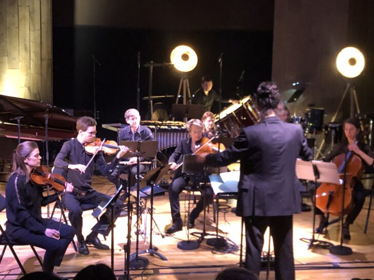 Aussi courte que pertinente, Metallages de la compositrice et chanteuse grecque Sofia Avramidou, bien connue aujourd'hui du public parisien, est à l'origine une pièce pour voix. Elle met à l'œuvre l'énergie du souffle – les vents sont joués sans l'embouchure – et la combinatoire rythmique (slaps, boucles, sons bruités de la contrebasse) dans une première partie galvanisante, explorant le registre grave des instruments. Le spectre aigu, dans un second versant très contrasté, renouvelle totalement le paysage sonore. De l'Américain Bryan Jacobs, l'œuvre suivante est victime d'une défaillance technique, un problème avec l'électronique qui ne répond pas. Le titre Dis Un It Im Ir (cinq préfixes signifiant l'empêchement) aura joué en sa défaveur.