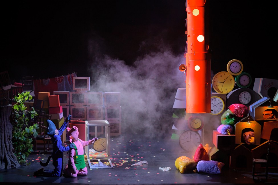 Le baryton Christophe Gay complète en loup la distribution, lui aussi avec une prononciation impeccable du texte, qu'il parle ou qu'il chante, en plus de trouver un médium plein à réentendre prochainement en Arlekin dans l'Ariadne auf Naxos de Limoges ! Dans un dépotoir rempli de cartons, ordinateurs et pièces usagées pensées par Paul Cox sous les lumières de Madjid Hakimi, tous entrent et sortent avec énergie pour faire rêver un jeune public prolixe en bravos aux saluts, démonstration une fois de plus que la musique classique s'adresse à tous et doit être présentée dès le plus jeune âge !