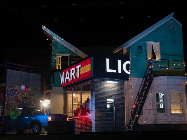 Loin des brumes écossaises, Simon Stone transpose le livret de Cammarano au sein de l'Amérique profonde défavorisée, post industrielle, oubliée du monde, où règnent encore la loi patriarcale et les querelles claniques empreintes de violence, de soumission et d'instrumentalisation des femmes. Lucia totalement esseulée dans cet univers délétère qu'elle exècre ne songe qu'à la fuite vers un ailleurs rêvé, ne trouvant d'échappatoire que dans la drogue et dans son amour pour Edgardo dont elle apprendra la prétendue trahison par un message sur Facebook s'affichant sur son smartphone : un clin d'œil doux amer de Simon Stone pour souligner l'importance sans doute abusive que peuvent prendre les réseaux sociaux dans notre vie moderne et connectée ! Contrainte par son frère Enrico à un mariage d'intérêt, elle assassinera son époux lors de la nuit de noces avant de sombrer dans la folie et la mort. Avouons d'emblée que cette transposition moderne et cohérente fonctionne parfaitement en respectant scrupuleusement le livret qu'elle explicite par l'utilisation intelligente de la vidéo, tout en centrant le discours sur la condition de Lucia qu'il est facile d'extrapoler à la condition féminine en général, problème aujourd'hui d'une douloureuse et brulante actualité…La scénographie du plus bel effet, exaltée par de beaux éclairages colorés, figure une petite localité de province du fin fond des États-Unis dont les différentes composantes (maison individuelle, fastfood, banque, pharmacie, motel, usine de traitement des eaux désaffectée, ancien drive-in délabré où sont projetés des extraits du film « My favourite brunette » de Bob Hope en 1947 …) sont présentés sur une tournette encombrée d'épaves de voitures cabossées composant tout le paysage désolé d'une classe sociale se sentant évincée, aux accents cruellement contemporains, dans lequel Stone s'applique à brouiller les cartes entre rêve et réalité par une utilisation savante et judicieuse de la vidéo (enregistrée ou en temps réel) qui permet d'élargir le propos par des flash-backs significatifs tout en affinant la minutieuse exploration de la psyché de l'héroïne qui la conduira au meurtre et au suicide.