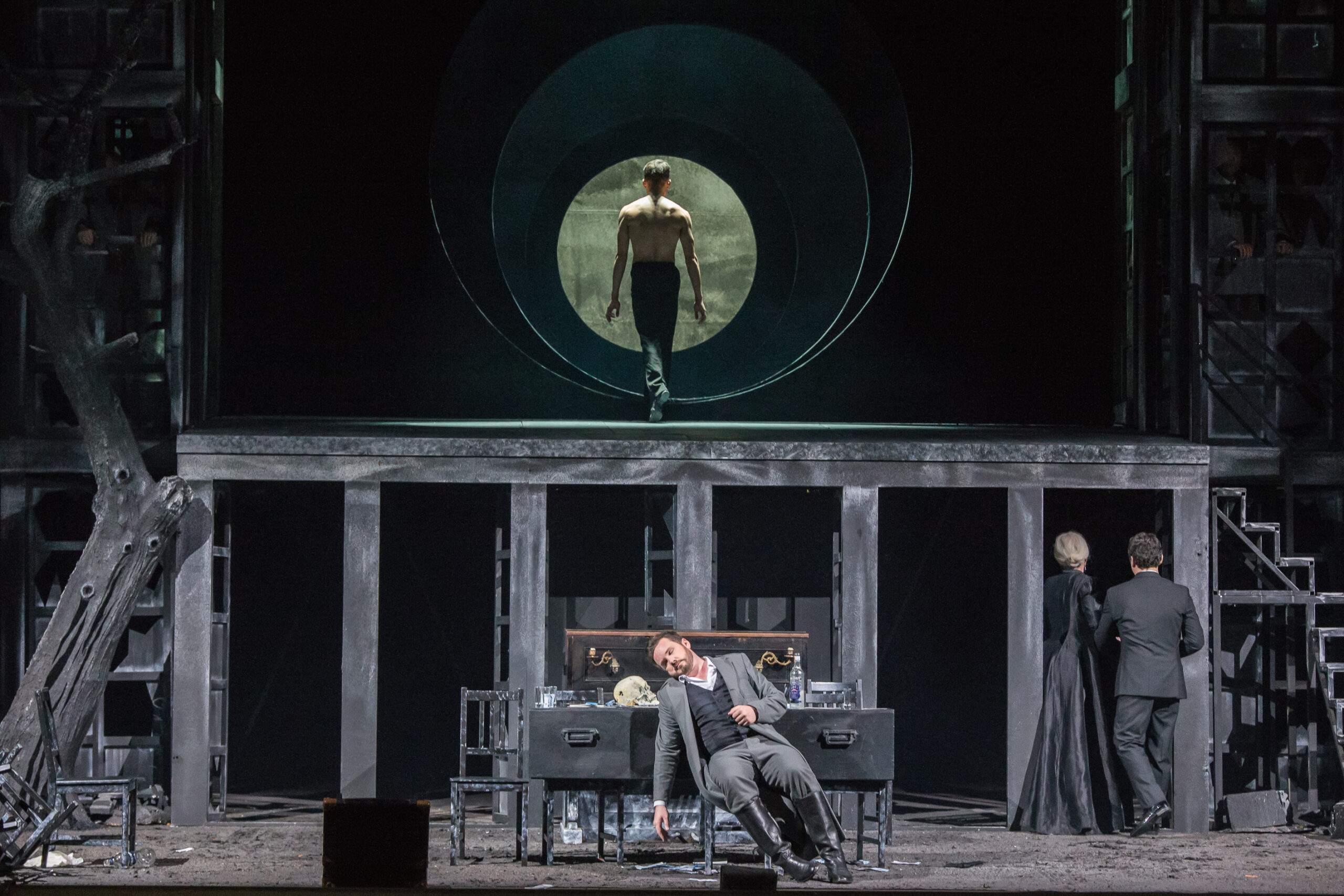 Le personnage inspire à ce point le metteur en scène qu'il a l'idée de le dupliquer par un danseur. Nouvelle Odile du Lac des cygnes (et piquant clin d'œil tchaïkovskien), clown noir de tous les ballets (lauriers aux chorégraphies signifiantes de Daniel Izzo), machine à fantasmes à tout faire du spectacle, Jackson Carroll, sur les premières mesures, se met au lit avec Hermann ; sur les dernières, c'est lui qui refermera lentement, dans l'apesanteur d'un envol impossible, cerné par un triple oculus qui n'est pas sans évoquer certain tableau de Jérôme Bosch, une production inquiète, à l'écoute de l'histoire du monde, et qui aura laissé peu à peu assez sonné.