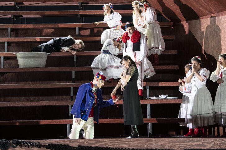 Parmi les protagonistes principaux, on retrouve une familière du rôle de la sacristaine avec Evelyn Herlitzius (Kostelnička) que nous avions entendue dans La Nourrice de Die Frau ohne Schatten de Richard Strauss en 2019 à Verbier. Elle continue d'impressionner avec sa puissante voix. Mais si alors, son instrument constamment projeté collait au personnage, ici, sa véhémence vocale nous apparaît moins propice. En effet, Kostelnička est une sacristaine, une personne investie de l'entretien et de la bonne marche de l'église. Elle est donc un être de précision, de bonne mœurs, soucieuse de la bonne marche des choses, certainement habitée par un esprit ecclésiastique et donc, plus pondérée que la marâtre que la soprano allemande propose. Reste qu'elle a conquis le public quand bien même sa ligne de chant souvent cassante fait montre d'une infime usure dans un registre aigu parfois serré.