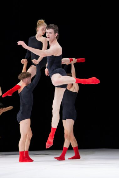 Avec une esthétique baroque et décadente, mais une technique néoclassique, la première pièce de ce programme, Xylographie, se décline en trois couleurs : le noir, le rouge et la terre. Les costumes prolongent cette évocation début de siècle avec des tenues qui ressemblent à celle des écuyères de cirque. Les groupes et les lignes formées par la chorégraphe sont très inventifs.