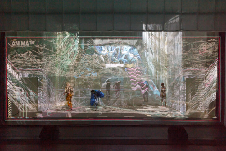 Schubert avait fait l'événement du festival Musica 2021 avec son monumental Asterism, projet artistique de plus de 35 heures, mêlant théâtre, danse, scénographie et musique, où il faisait déjà appel à une simulation informatique produite par une intelligence artificielle. De format beaucoup plus réduit (1heure 30), Anima ᵀᴹ est une œuvre visuelle et sonore entièrement générée par l'ordinateur, où Schubert poursuit ses recherches artistiques d'un monde augmenté et virtuel. Il convoque le texte, passant par la voix parlée et traitée des sept membres du Decoder Ensemble (tout à la fois acteurs et danseurs), et associe la vidéo de Lucas Gutierrez et la musique dans un flux quasi continu de sons et d'images en 3D qui impressionnent.