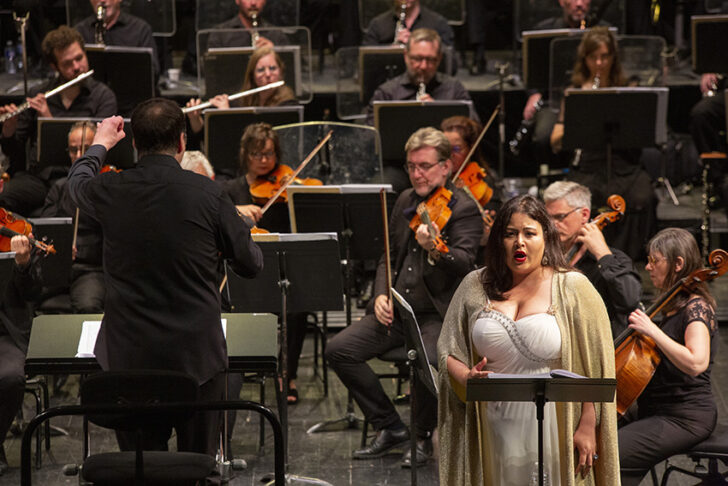 L'Opéra de Tours fait le pari d'une Frédégonde à l'écriture hybride. Initiée par Ernest Guiraud, la composition est finalement le fruit de l'orchestration de Paul Dukas et de la création des deux derniers actes par Camille Saint-Saëns, ce qui est perceptible sur la qualité de la partition qui est plutôt conventionnelle sur les trois premiers actes et semble être délivrée dans la seconde partie composée des acte quatre et cinq. Deux représentations en version de concert ont donc permis d'écouter la brillance de l'orchestration et le premier mérite est celui du travail symphonique, bien qu'ici avec un tel effectif les voix soient parfois couvertes. L'exploitation de chacun des pupitres laisse découvrir les ambiances mystérieuses (dans l'emploi doucereux des cuivres au premier acte) et les moirures des cordes.
