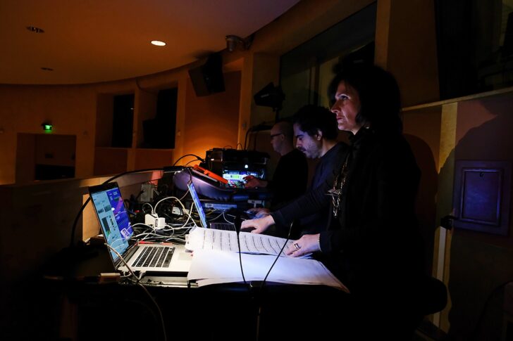 Adepte du « temps réel », la compositrice (italienne toujours) Lara Morciano aime se lancer dans des projets risqués où elle met en jeu, avec son collaborateur virtuose José Miguel Fernandez, les outils de pointe de la technologie : tel le logiciel de suivi de partition Antescofo qui permet à l'électronique de réagir aux moindres gestes des instrumentistes. Pas de clic dans l'oreille du chef comme chez Filidei ; l'entière responsabilité de la partie électronique est dévolue à la machine et au RIM (Réalisateur en Informatique Musicale) qui en assure le bon fonctionnement. Les promesses sont tenues ce soir, dans Nei rami chiari (Dans les branches légères) dont le matériau électronique provient, nous dit la compositrice venue dialoguer avec Mantovani, de l'analyse spectrale des résonances d'un gong. La pièce aussi puissante que maîtrisée sidère par la richesse de ses composantes et l'hybridation de ses couleurs. Lara Morciano y sculpte son espace et dessine ses trajectoires à travers l'énergie du geste des instrumentistes dont il ne faudrait pas oublier la présence et le rôle générateur dans cette conception visionnaire du sonore. Le temps suspendu et les superbes figures qui se dessinent dans l'espace ménagent d'autres perspectives dans un épilogue qui apaise et émerveille tout à la fois.