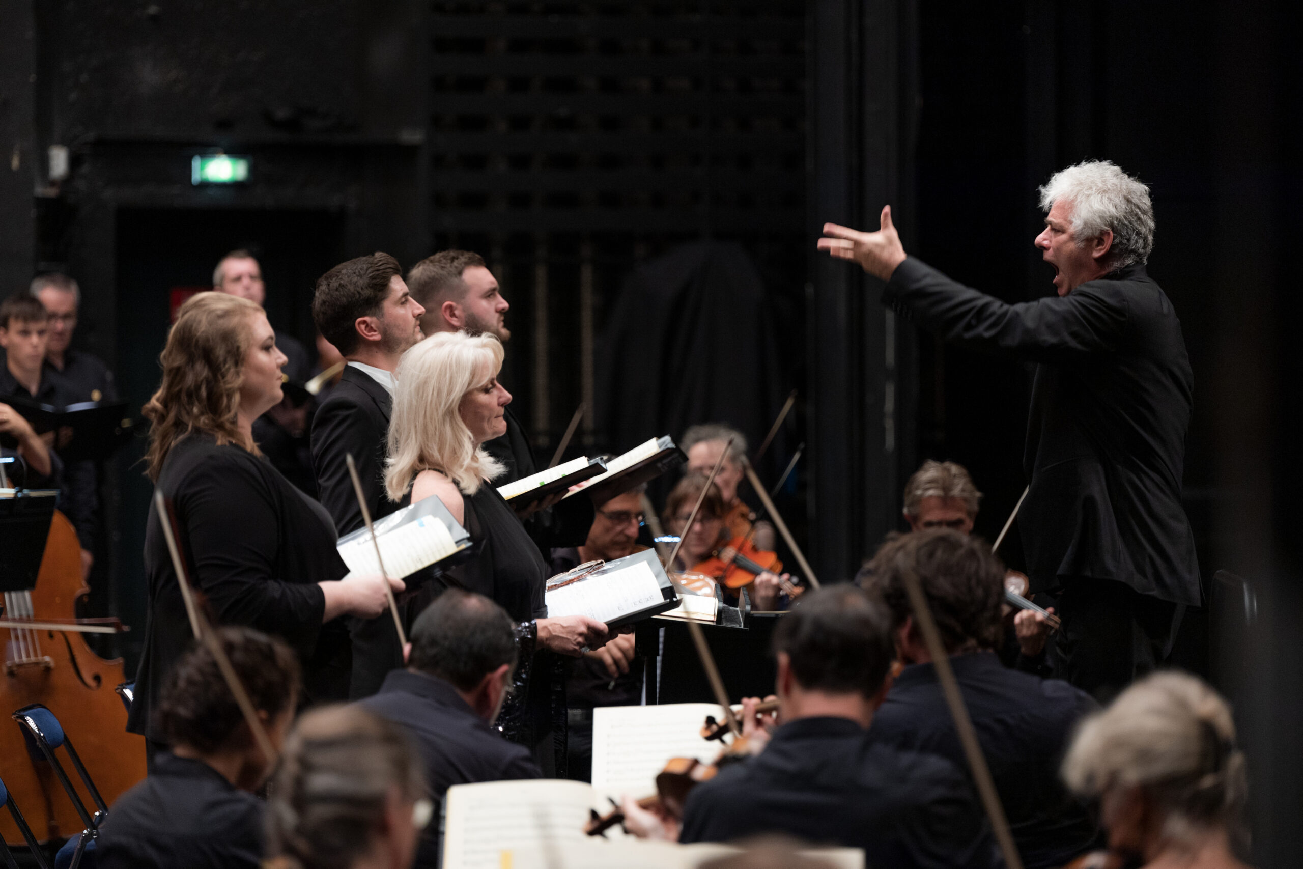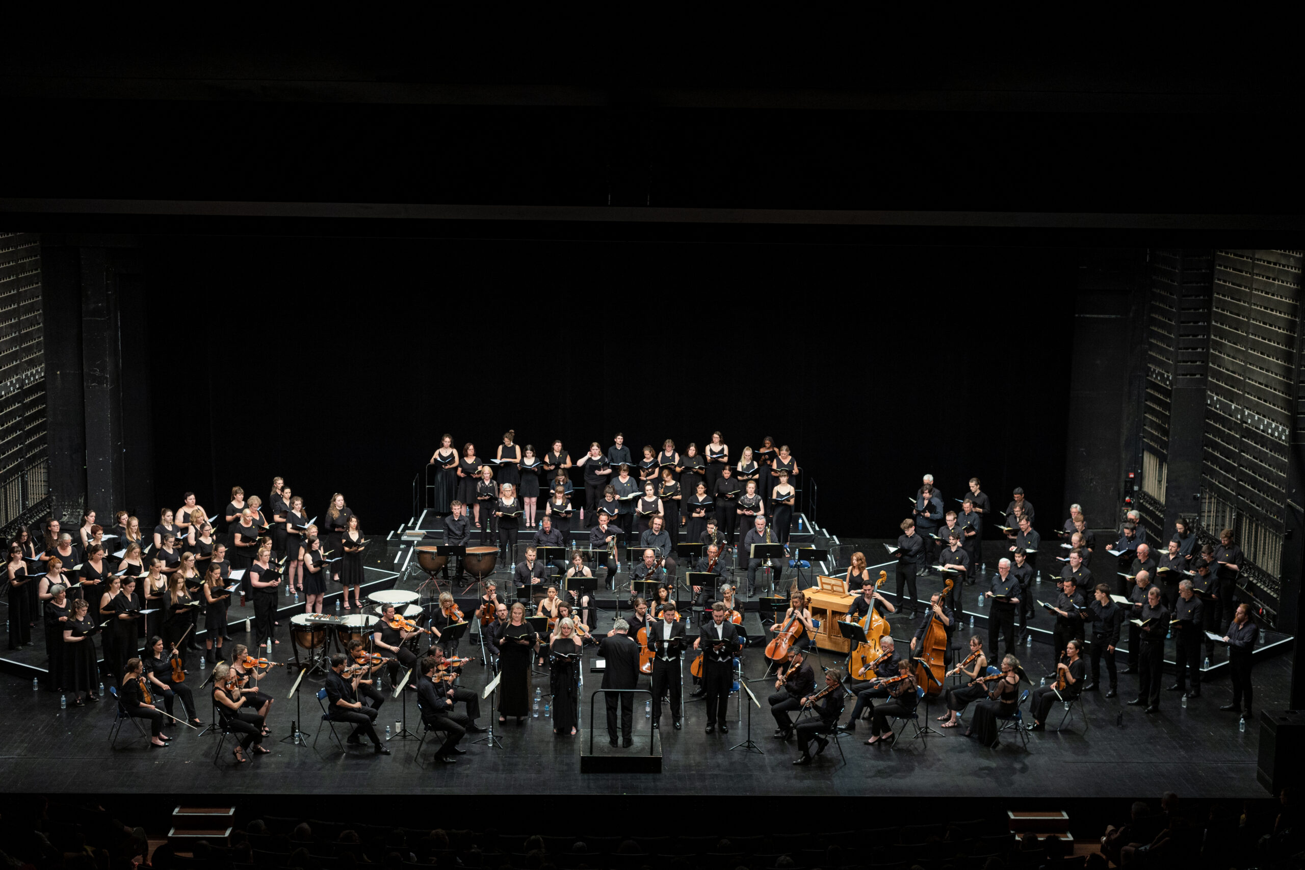 Grant Llewellyn quitte succinctement la scène, puis plus d'une centaine de choristes le rejoignent, du BBC National Chorus of Wales et du Chœur de Chambre Prolatio, formation de jeunes chanteurs issus des classes lyriques du Conservatoire de Bretagne. Divisés en trois groupes, le plus aigu à gauche et le plus grave à droite, l'ensemble est rejoint par le quatuor vocale ainsi que par le chef sur le devant de la scène pour s'attaquer à l'ultime chef-d'œuvre de Mozart.