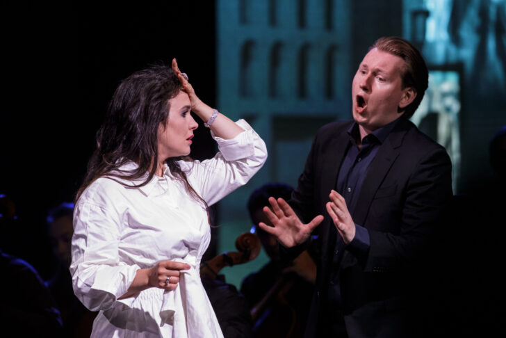 Nous avions entendu le baryton Julien van Mellaerts personnifiant un Papageno hilarant lors d'une Flûte Enchantée par l'Académie du Verbier Festival en 2019. Si aujourd'hui, il ne crève pas l'écran, la faute au rôle ingrat de Masetto qu'il interprète tant vocalement que scéniquement avec beaucoup de sagesse et de retenue. La basse Alexandros Stavrakakis (Le Commandeur) s'affirme avec son imposante voix qu'il conduit avec maîtrise. Très heureuse surprise avec le ténor Bogdan Volkov (Don Ottavio). Bien souvent, ce rôle est attribué à des ténors légers (ou qui voudraient l'être) faisant du personnage de l'amoureux sempiternellement éconduit un pauvre imbécile. Rien de tel avec Bogdan Volkov. Armé d'une belle puissance, d'une étendue vocale qu'il domine parfaitement, d'un légato magnifique, c'est pur régal que d'entendre son « Dalla sua pace » chanté sans aucune mièvrerie. Un plaisir reconduit dans son « Il mio tesoro intanto » où la perfection de sa ligne de chant fait merveille.
