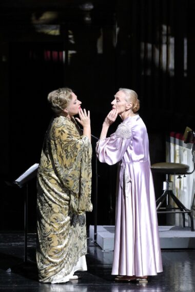 Diana Damrau, la reine de cette petite société, n'est pas plus à l'aise que ses collègues dans les passages les plus proches d'une conversation naturelle, mais elle a pour elle la grande scène finale, où son chant peut se déployer plus librement. Elle s'y montre moins aristocratique que ses grandes devancières et le timbre fait toujours penser à la Zerbinetta qu'elle a été sur la même scène il y a quinze ans, mais on respire en entendant enfin ce beau chant libre, généreux et émouvant.