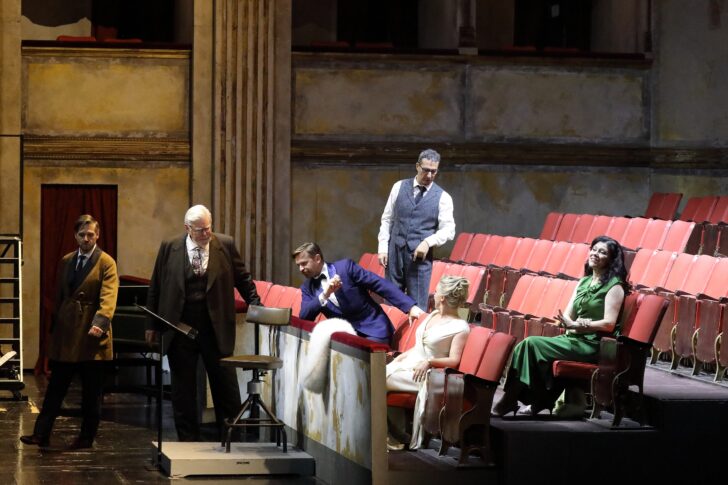On pourra trouver cela difficile à croire, mais c'est ainsi : l'Opéra de Munich, qui en a accueilli la création, n'a plus vu Capriccio depuis plus de deux décennies, la dernière nouvelle production datant de 1988. Pour rompre ce ban, Serge Dorny a choisi d'importer une production qu'il avait demandée à David Marton pour l'Opéra de Lyon il y a déjà une décennie, plutôt qu'une nouvelle mise en scène, et ce au Prinzregententheater plutôt qu'au Nationaltheater, avec deux fois moins de places et une possibilité de reprise bien moindre, puisque ce théâtre rescapé des bombes n'est loué que quelques semaines par an par l'Opéra de Bavière. Ce n'est pas un hasard : que cette inoffensive idylle rococo ait été créée à moins de vingt kilomètres du camp de concentration de Dachau, en octobre 1942, en pleine bataille de Stalingrad, n'est certainement pas innocent et ne peut être banalisé comme simple refuge dans la sphère artistique.