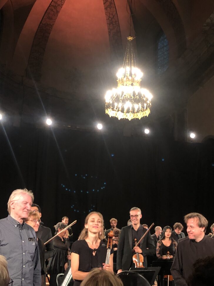 Le festival renoue avec les concerts à la Collégiale de Briançon, redoutée elle aussi pour son acoustique des plus réverbérantes que le chef italien Tito Ceccherini à la tête de l'Orchestre national de Cannes en grande forme, parvient à maîtriser au mieux. Deux œuvres concertantes sont au programme et trois solistes à l'affiche, la violoncelliste (et membre de l'orchestre) Marie Viard, le clarinettiste Patrick Messina (première clarinette solo de l'OnF) et le pianiste Jean-François Heisser. Dans Le livre des élégies VI – Des anges et des dieux de Jacques Lenot, donné en création mondiale, c'est le chant éperdu du violoncelle qui s'entend en soliste, planant au-dessus d'un orchestre qui ajoute ses couleurs et son halo sans en perturber la trajectoire inéluctable. Le geste libre de Marie Viard, dont la sonorité rayonnante embrase l'espace, fait merveille, rappelant le jeu de Jean-Guihen Queyras, l'un de ses maîtres.