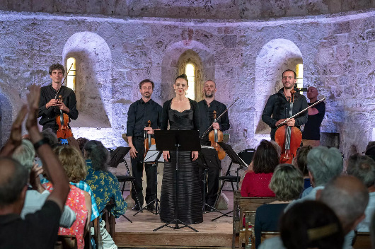 Messiaen, Le Jeune et Dusapin sont à l'affiche du concert donné par le chœur lyonnais Spirito et sa cheffe Nicole Corti dans l'église du Chazelet qui surplombe le village de La Grave. Le chœur a mis au programme les Cinq Rechants (1948) pour douze voix solistes de Messiaen, une œuvre qu'il tresse avec trois extraits du Printemps de Claude Le Jeune, musicien de la Renaissance à qui Messiaen rend hommage à travers son titre. On est sous le charme de ces voix agiles et flexibles chantant à cinq la poésie mesurée à l'antique de Jean-Antoine de Baïf (1532-1589) dans la cantate de Le Jeune, quand Messiaen recherche davantage « l'orchestre vocal » pour sa glorification flamboyante de l'Amour. La langue y est le plus souvent inventée, répondant à des mobiles musicaux, et l'écriture rythmique complexe qui emprunte aux déci-tâlas hindous. Conviant les voix en solo, duo, quatuor ou en tutti, l'œuvre exigeante est vaillamment portée par des chanteurs dont c'est la première exécution en public.