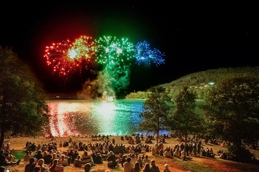 En soirée, le public est invité à regagner les berges du Lac de Petichet où une scène a été dressée et une piste de danse aménagée pour le bal populaire dont la musique à danser – tango, mambo, break dance, sirtaki… – a été confiée à dix compositeurs : une idée d'Henry Fourès secondé par le duo Armand Angster (clarinette) et Françoise Kubler (chant) ainsi que l'orchestre Comité des Fêtes rejoint par Pierre Charial et son orgue de Barbarie. Ils animent la soirée et font danser le public jusqu'à minuit. Le feu d'artifice au mitan de la fête, tiré sur le lac, restera plus sûrement gravé dans les mémoires : le spectacle est somptueux, mélangeant en spirales colorées et en tournoiement d'arcs-en-ciel entremêlés, des bleus, des rouges, des orangés, des verts, des violets et des pourpres… Une idée de Bruno Messina en connivence avec l'artificier!