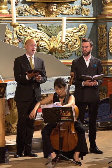 C'est à la cour des Gonzague qu'a retenti, pour la première fois, cette toccata d'ouverture de l'Orfeo de Monteverdi. À Valloire, c'est le cornet à bouquin de Jean Tubéry qui sonne tellement bien dans cette superbe église baroque de Savoie. La première pièce chantée est de Frescobaldi : « Daigne, O grand Ferdinand, prêter l'oreille… entends les sonorités complaisantes ». La voix puissante et le timbre solennel du ténor, Olivier Coiffet, mettent en valeur musique et paroles : « celui qui apprécie ici-bas la sonorité des chants, élève son âme vers l'harmonie des cieux ». Une belle sinfonia de Cristoforo Malvezzi fait respirer chanteurs et public avant un retour à Girolamo Frescobaldi et deux pièces où vont dialoguer Olivier Coiffet avec Caroline Arnaud puis Romain Bockler. Nous sommes dans l'atmosphère de Florence. Les festivaliers découvrent, alors, Francesca Caccini, la fille de Giulio. Chanteuse, claveciniste, elle fut, surtout, l'une des premières femmes compositrice. Parmi ses chansons, Jean Tubéry a choisi O felice pastore, une pièce qui exalte l'amour : « Qu'il suive Amour, qui dilue tout ennui et toute douleur ». Très bien chanté et joué par Caroline Arnaud et Olivier Coiffet. Très vivant, ce concert Godi Fiorenza ! est tout à fait dans l'esprit du thème Florence Baroque choisi par Gaël de Kerret, le directeur artistique du Festival.