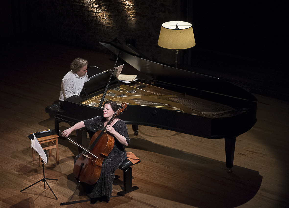La Sonate de Brahms, toute première œuvre pour violoncelle et piano du compositeur est très contrastée, alternant mélodies simples ou plus complexes, grâce et violence. Dès lors, on savoure l'art des transitions de Pascal Amoyel et d'Emmanuelle Bertrand qui passent du fortissimo le plus abrupte aux sons les plus clairs et tendres. L'acoustique exceptionnelle de la grange permet un équilibre parfait entre les deux instruments.