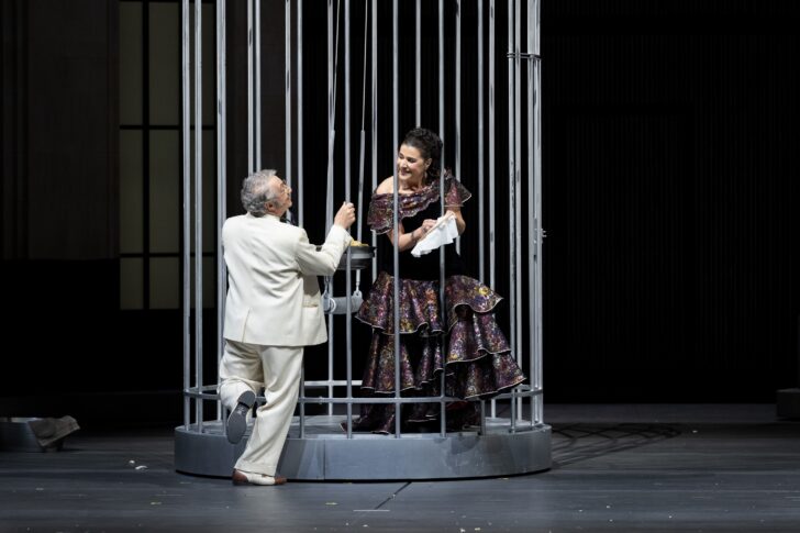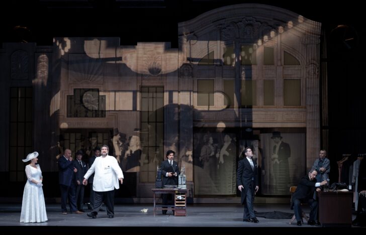De quand date-t-elle, déjà, cette mise en scène du chef-d'œuvre de Rossini ? 1980 peut-être, ou au plus tard l'an 2000 ? Non, elle est toute récente, et arrive au festival d'été en ligne droite du festival de Pentecôte dirigé par Cecilia Bartoli. Rolando Villazón, ténor semi-retraité promu metteur en scène, nous promet pourtant de l'inédit, une mise en scène qui sort des sentiers battus, mais il ne fait que combiner des éléments banals vus et revus. Banale au possible, son idée de situer l'action au temps des grands studios hollywoodiens et de faire de son étoile une star de cinéma, sous le nom de Ceci B. Artoli (sic), banal aussi l'ajout d'un protagoniste muet censé donner à la scène une sorte de mouvement perpétuel – on l'avait vu bien mieux fait par Axel Ranisch, vrai metteur en scène et vrai cinéaste, pour un inoubliable Orlando Paladino. Ici, c'est le grouillot du studio, interprété par la vedette de music-hall Arturo Brachetti, qui se donne sans compter : il parvient parfois à faire sourire, plus rarement à émouvoir un peu, mais n'est presque jamais indispensable.