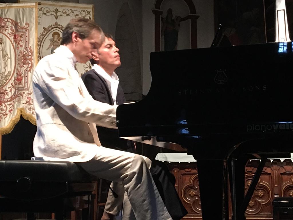 Dès la Seguidilla à l'Alameda de Séville du très docte Vincent d'Indy, le bras gauche de Guillaume Coppola, immiscé entre les deux bras d'Hervé Billaut, donne le la de l'osmose entre les deux artistes de Rêves d'Espagne, un programme entièrement dévolu à la fascination respective qu'entretinrent, au tournant des XIXe et XXe siècles, compositeurs français et espagnols, après l'avènement musical d'une certaine Carmen. L'un de clair vêtu, l'autre de sombre, à tour de rôle au premier plan, les deux pianistes déroulent la chronologie de leur disque paru en 2021. Hormis De Falla (deux danses de La Vida Breve), et Moszkowski (compositeur allemand, originaire de Pologne, vivant en France), les compositeurs élus sont français : Ravel (la version originale de sa Rhapsodie espagnole pour deux pianos, jouée sur un seul avec une complicité aussi nécessaire que diabolique), Fauré (Le pas espagnol qui referme sa Dolly) et surtout Chabrier (son España transcrit par Messager). De cet enchevêtrement de lignes toujours claires même quand les notes abondent (les glissandi fendent l'atmosphère, les aigus claquent, les graves affichent rondeur et présence), l'agilité digitale des interprètes ressort à chaque fois triomphante. Au cœur de cette déferlante espagnole déclinée sur une heure et demie, et frisant l'insouciance avec la récurrence de ses fondamentaux (la trinité habanera/fandango/ségeduille), on goûte le bienvenu mélancolique des Nouvelles danses espagnoles de Moritz Moszkowski.