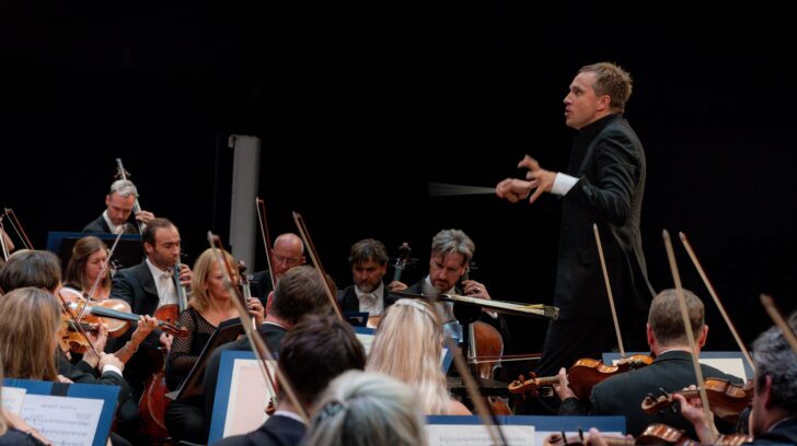 Après l'entracte, au programme la Symphonie n° 5 en do mineur op. 67. Côté rareté, comme annoncé au programme, on pouvait peut-être faire mieux ! A moins que la rareté consistât dans la manière dont Vasily Petrenko et son Royal Philarmonic Orchestra (rappelons que le chef russe en a été nommé directeur musical en remplacement de Charles Dutoit qui avait quitté ce poste en janvier 2018 suite à des accusations de harcèlement sexuel) abordent cette œuvre. D'emblée notons que sa jeune expérience auprès de son orchestre londonien est encore trop verte pour que l'osmose soit complète. Mais de là à nous offrir un tel déluge infernal, il y a de la marge. Une marge que Petrenko n'hésite pas à franchir assimilant ce romantisme certes violent de Beethoven avec ce qu'il nous montre dans les symphonies de Chostakovitch dont nos lignes ont vanté les innombrables mérites. C'est à un déferlement sonore auquel le chef nous convie. La brutalité des contrastes pianissimo et fortissimo dessert son discours orchestral et perd de son intelligibilité. Il empoigne cette symphonie comme s'il s'agissait d'illustrer le combat de monstres préhistoriques. Il n'est de sons assez puissants qu'ils ne nous fasse entendre. La saturation des timbres, celle des cuivres agresse les oreilles sensibles. Un chaos sonore peut-être encore accentué par l'acoustique de la Grande Tente du festival. Balançant ses avant-bras avec souplesse, comme envahit par une force inconnue, Vasily Petrenko soudain raidit sa nuque en secouant sa tête rapidement. Ses cheveux se hérissent, vibrent et s'agitent en tous sens, un bras se lève, un doigt pointe, le chef exulte, appelant ses troupes au paroxysme de la férocité musicale. Quand enfin, le dernier accord éclate, le public, subjugué par tant d'éclats sonores explose dans un hourra libérateur. Quelques personnes constatant le gâchis de ces interprétations, sous le choc de tant d'agressivité observent, éberlués, la manifestation enthousiaste du public.