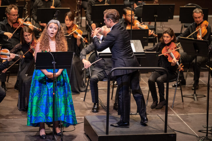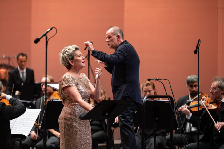 C'est ensuite un astre qui apparaît sur scène, et l'on est d'emblée ébloui par sa présence, avant même qu'elle ait émis le moindre son. Nous ne rêvons pas, c'est bien Joyce DiDonato, la voici pour la première fois au Festival. Autant dire que pas une place n'est inoccupée ! Elle vient chanter Berlioz. Elle est sa reine Cléopâtre, dès ses premières paroles. Elle l'incarne avec une intensité, une vérité, un sens de la tragédie à faire pleurer les pierres. La cantate par trop audacieuse qui valu à Berlioz un troisième échec au concours du Prix de Rome, met en scène la mort de la grande reine d'Égypte. Une mort spectaculaire et émouvante qu'il n'est pas donné à n'importe qui d'interpréter. Dotée de moyens vocaux exceptionnels, dans la projection comme dans le passage des graves les plus impressionnants aux aigus les plus intenses, comme dans ses crescendos incroyables, la diction parfaite, elle nous bouleverse par tout ce qu'elle met de sensibilité dans son personnage : comment ne pas être touché lorsqu'elle s'exclame « Ah ! Qu'ils sont loin ces jours…» ! Et quel récitatif ! Où tour à tour elle exprime sa colère, sa déception, sa tristesse, son sentiment de trahison, sa douleur…Que dire de la fin, sublime, si poignante, si chargée émotionnellement, lorsque sur la marche implacable de l'orchestre, la sourde pulsation des timbales, son chant s'amenuise, entrecoupé de silences (« Cléopâtre en… quittant… la vie, redeviens digne de… César ! »), jusqu'à l'extinction ! L'orchestre se montre un partenaire de haut vol, jusqu'à ce dernier trémolo, sourd, caverneux, effroyable, qui suit l'ultime souffle de la reine expirant, et François-Xavier Roth, un chef ayant une véritable vision de cette œuvre, sachant la transmettre aux Siècles par une direction qui force l'admiration.