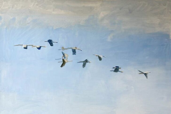 Joutsenet muuttavat (Migration des cygnes). Le dernier mouvement adopte un ample développement en arche et commence par un crescendo de l'orchestre. Le compositeur parle de « cygnes volant directement vers le soleil ». Plusieurs associations instrumentales lancent des appels aléatoires tandis que les cygnes chanteurs (emblème du Pays aux mille lacs) se surajoutent et complexifient le tissu sonore. Après une acmé magnifique l'orchestre et les chants d'oiseaux s'estompent peu à peu vers le lointain.