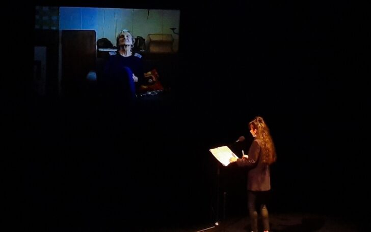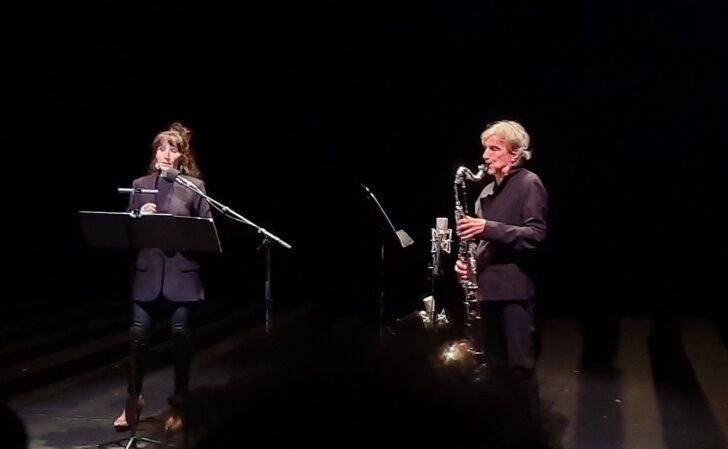 On en apprend davantage sur les deux héros du jour avec Armoise et Moisare, pièces en miroir très drôles de Zad Moultaka qui met en scène nos deux musiciens. Dans Armoise (2011) pour vidéo et clarinette, Françoise est filmée, répondant à un interlocuteur fantôme dont on devine les questions (ou pas) quand Armand (autour duquel tourne le propos) est sur scène et joue en continu sur la voix parlée de sa compagne. Moisare (2022) inverse le scénario. Armand Angster, filmé, nous parle de sa partenaire tandis que la chanteuse en live ornemente, en multipliant les situations comiques : du théâtre musical qui frôle l'univers de Georges Aperghis, également à l'affiche du concert. À mi-mots (2022) est un duo fusionnel entre voix et clarinette, tendre, sensuel et tout en finesse dans l'interprétation des deux musiciens et compagnons de route auxquels il est adressé.
