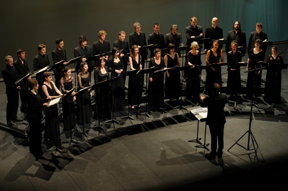 Aedes, en « grande formation » ce soir réunit 35 chanteurs aguerris à ces répertoires souvent exigeants : un effectif bien nécessaire mais suffisant pour rendre justice, entre autres, à la puissance de l'œuvre de Poulenc. On ne peut que louer la beauté des timbres, l'homogénéité des pupitres et une justesse d'intonation quasi parfaite. Il est certes surprenant d'entendre, a contrario de ce qui se fait actuellement, une chanson de Janequin chantée – comme jadis – par un grand chœur ou un madrigal de Gesualdo (toujours très périlleux, mais pleinement assumé), il est vrai confié à un effectif plus chambriste.