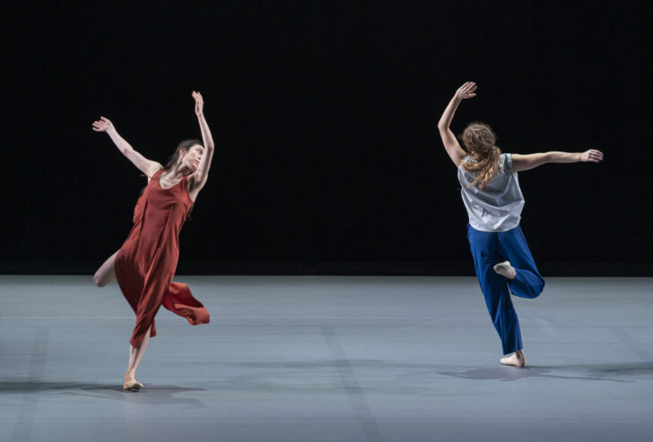 Dans Everyone Keeps Me, Pam Tanowitz profite de la maîtrise de la technique classique par certains des danseurs pour juxtaposer des duos et les faire se déployer dans une écriture polyphonique complexe, en écho à la partition jouée live par le quatuor. Il y a aussi des sérieuses influences Cunninghamiennes dans ce ballet qui emprunte les développés attitude, tours attitude, penchés à angle droit, au chorégraphe américain et à ses illustres prédécesseurs, Martha Graham et Jerome Robbins. Une certaine sérénité imprègne ce ballet composite, lumineux et multicolore, comme un vitrail.