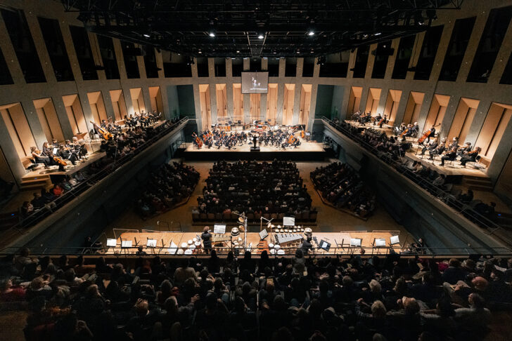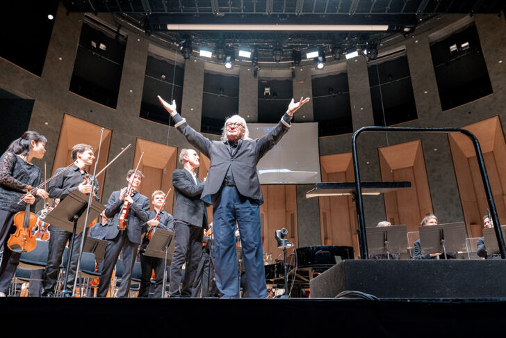 L'Orchestre du Conservatoire de Paris vient grossir les rangs de l'Ensemble Intercontemporain, tous sous la direction de Peter Rundel, pour la première parisienne d'In situ de Philippe Manoury, une pièce où le compositeur repense la configuration de l'orchestre en fonction des lieux investis.