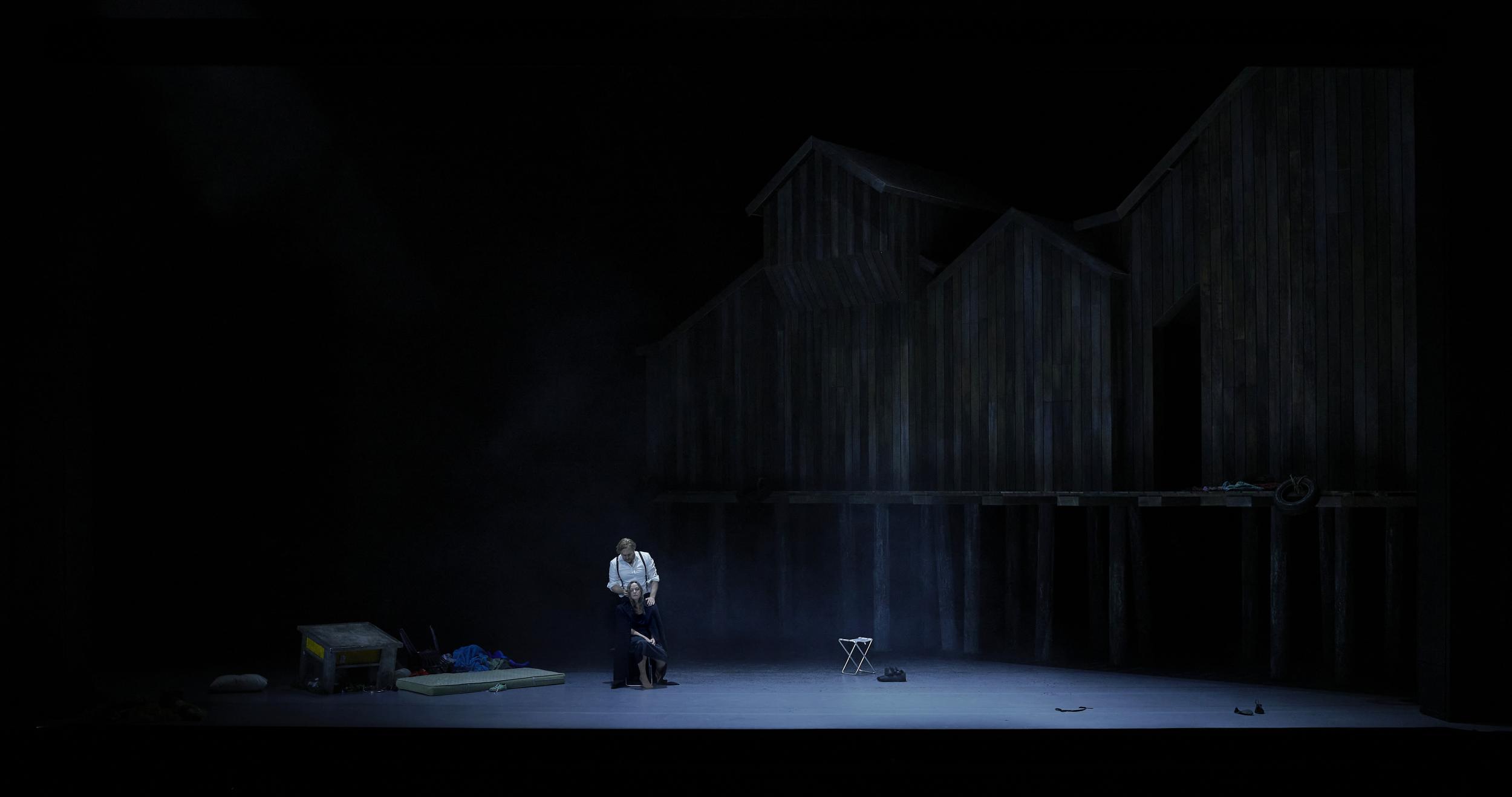 Une plage anthracite aux confins de la ville, la nuit… une cabine téléphonique taguée au pied d'une sombre demeure de bois montée sur une forêt de pilotis : c'est là que Loy chorégraphie Le Mandarin merveilleux (créé à Cologne en 1926), actualisant au plus près de sa sensualité l'argument audacieux de Menyhért Lengyel : une prostituée malmenée par ses souteneurs découvre l'amour avec un Mandarin. Loy évacue tout exotisme oriental, qui habille son Mandarin en un séduisant garçon d'aujourd'hui dont les manières, à l'opposé de celles en cours jusque là, troubleront chacun des protagonistes. Ce Mandarin merveilleux est l'occasion de révéler que le metteur en scène était aussi un chorégraphe affûté : Christof Loy ne cesse de lancer sur et hors de scène une poignée de danseurs survoltés dont le jeu intense et le mouvement perpétuel, au plus près de corps que l'on sent prêts à tout, rappellent les courses fiévreuses des spectacles de Chéreau. La fosse révèle également un Ivor Bolton qu'on n'attendait pas dans ce répertoire. La violence haletante de la partition lui inspire une lecture suffocante, dont l'urgence semble le maître-mot. Coupant la parole au Barde, il lance la talentueuse phalange bâloise dans une sorte de course à l'abîme qui conduira à la mise à mort du Mandarin, malmené, progressivement dénudé, avant d'être ressuscité par le premier mouvement de la Musique pour Cordes, Percussion et Célesta (créée à Bâle en 1937) pour un pas de deux qui rappelle que la Mort ne vainc pas l'Amour. Fin « heureuse », donc : en sera-t-il de même pour Barbe-Bleue et Judith ? Rendez-vous après l'entracte…
