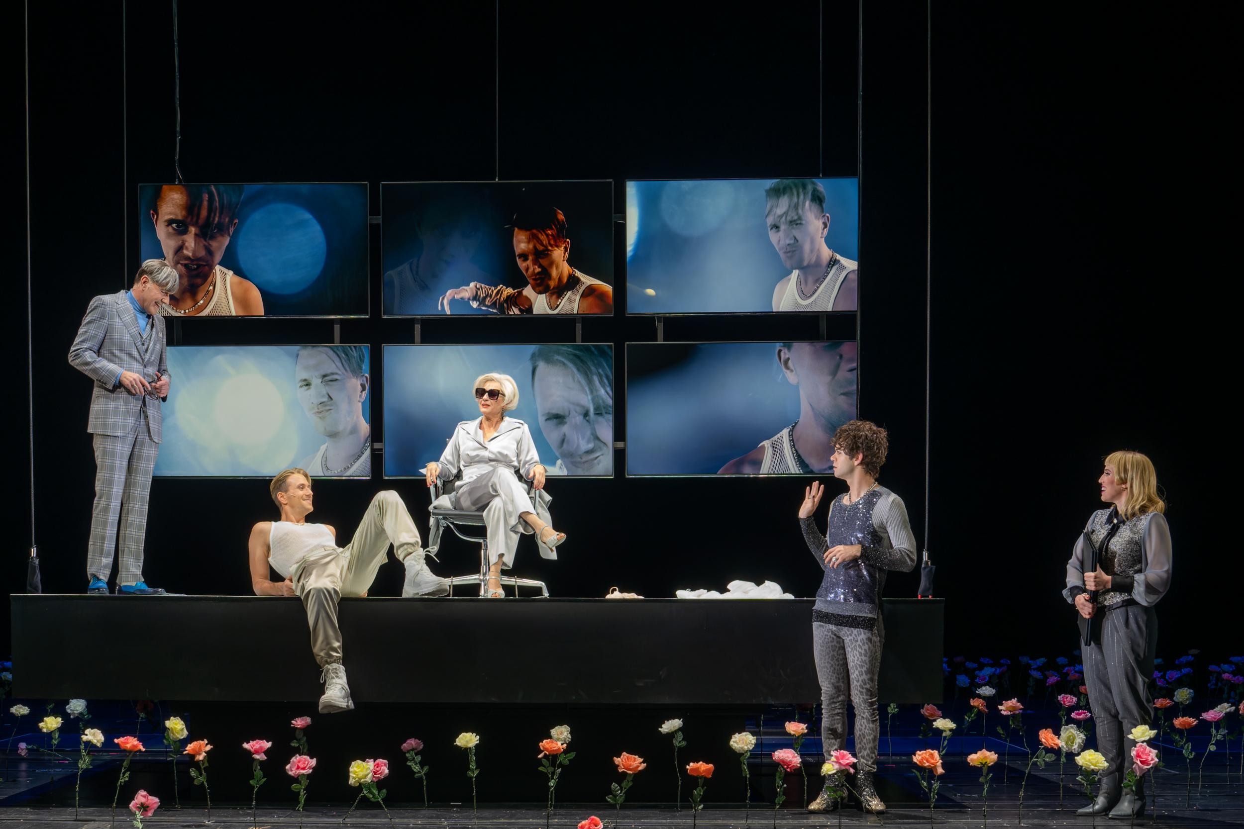 C'est même toute la société qui a évolué depuis le 1941 de Kurt Weill : Lady in the dark revu par le metteur en scène Martin G. Berger a fait le choix d'ausculter impitoyablement 2022, année secouée de questionnements de toutes sortes : le genre notamment autour du personnage de Charley, le vibrionnant directeur créatif de Liza, les diktats de l'apparence physique (« Soyez vous-même »….) et même l'écriture inclusive taclée d'un jeu de mots réservé aux germanistes (Tanzer*inen oder aussen ?)… Le milieu de la mode et son invraisemblable barnum restant à lui seul, en 2022 comme en 1941, le condensé idéalement stimulant des questions existentielles du moment.