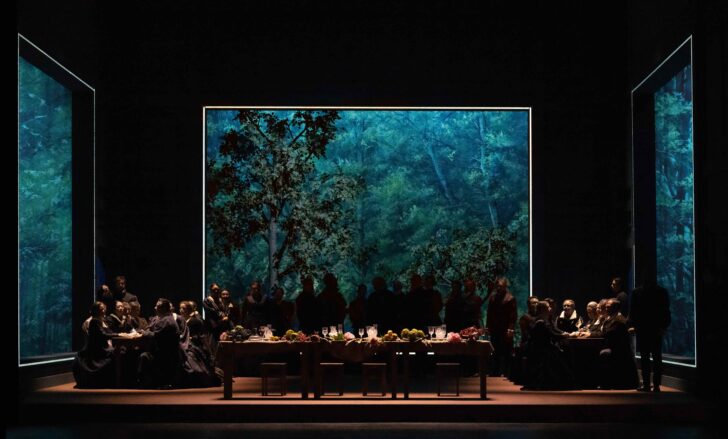 Dans son excellent ouvrage « L'opéra – Mode d'emploi », Alain Perroux, notre ex-collègue journaliste aujourd'hui brillant directeur de l'Opéra national du Rhin décrit le belcanto comme « une esthétique qui prône un chant somptueux et imaginatif autour duquel tout le reste s'ordonne. » Or, à quoi est-on confronté dans cette production genevoise de Maria Stuarda de Gaetano Donizetti ? Principalement à une carence de ce qui fait le fondement du belcanto : la qualité du chant. Pour l'une des deux principales protagonistes, par inadaptation vocale à ce genre de chant et, pour l'autre, par manque de technique, voir d'élan artistique pour remplir les critères de l'opéra belcantiste. Pour pallier ces carences musicales, on se repose sur la mise en scène (Mariame Clément), sur des décors (Julia Hansen) seyants de sous-bois feuillus, éclairés de belle manière (Ulrik Gad), sur des costumes recherchés pour qu'avec du coloré, du clinquant, du scandaleux, du vulgaire parfois, on goûte au plaisir des yeux dans l'espoir d'occulter celui des oreilles.