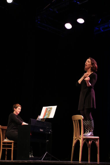 Musicalement, les quatre chansons écrites et composées pour ce spectacle marquent les moments clés de l'histoire, alors que les interventions du piano donnent une ambiance onirique proche de la musique du début du XXe siècle à l'image de Claude Debussy, Maurice Ravel ou Bela Bartók. On aurait apprécié une voix chantée un peu plus stabilisée de la comédienne afin de porter au mieux ses compositions bien adaptées aux plus-petits même si la diction est très précise pour que les paroles soient comprises jusqu'au fond de la salle. Mais les interventions au piano de Marion Dinse apportent une atmosphère idéale pour que la magie du conte s'opère rapidement.
