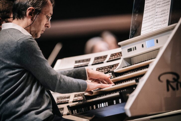 En vedette ce soir, Olivier Latry, épaulé par son assistant, s'installe à la console de l'orgue pour la création de la Sinfonia concertante d'Esa-Pekka Salonen dont le titre souligne d'emblée la distance prise avec le traditionnel concerto. L'œuvre en trois mouvements (vif, lent, vif) se réfère à différents modèles de l'histoire, danse de la Renaissance (Pavane) ou encore polyphonie médiévale, allégrement revisités par le compositeur. Pavanes et bourdons du premier mouvement, où l'errance mélodique est la règle, réservent quelques belles frictions entre les deux sources sonores, Olivier Latry donnant à entendre l'aura scintillante des aigus de l'instrument. Ses solos alternent avec des tutti bruyants, pleins-jeux de l'orchestre et de l'orgue plus confus que véritablement mixés. Les grandes arabesques de l'orgue traversent l'espace symphonique dans Variations et chant funèbre, un deuxième mouvement fleurant les ressorts des logiciels de composition, spectaculaires mais sans réelle élévation. L'orgue sotto voce qui referme le mouvement est une saine compensation. Le troisième mouvement, Montage fantôme, est survolté, citant danses et chants du Moyen âge avant que ne résonne la version symphonique de l'Organum (polyphonie à quatre voix) de Pérotin (XIIᵉ siècle) et son empreinte rythmique bien reconnaissable. La citation fait valoir la virtuosité de l'organiste et la variété des registres de son instrument. Les dernières minutes réservent de belles envolées plus risquées, dans la torsion des deux sources instrumentales et l'embrasement de l'espace sonore, Salonen optant pour une fin « sur l'erre », comme on le dit d'un bateau qui continue à glisser sur l'eau après avoir couper son moteur. En bis, l'improvisation d'Olivier Latry explore une nouvelle fois la palette des sonorités et la puissance d'un instrument chauffé à blanc !