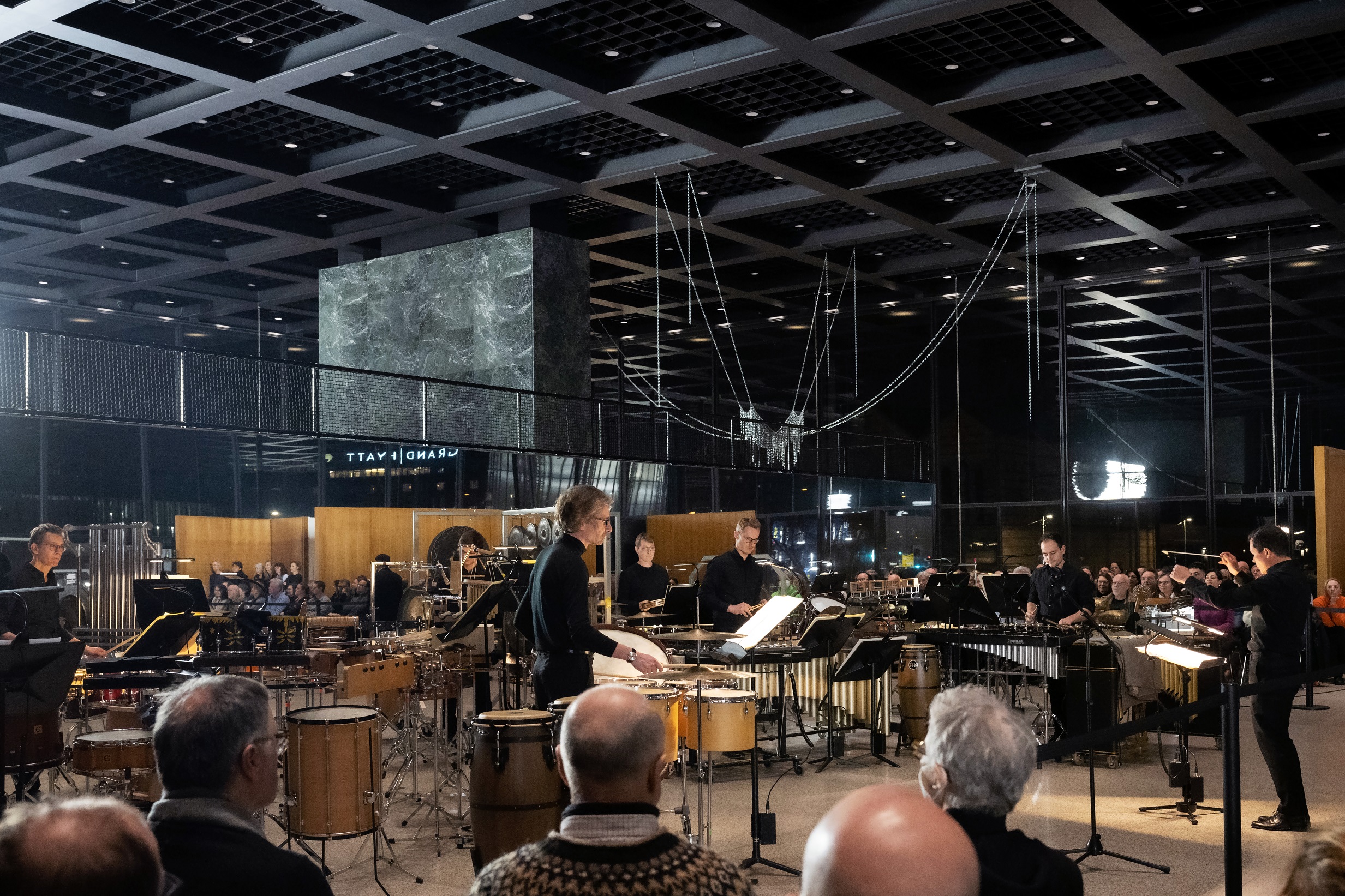 Les musiciens du Philharmonique, ou du moins ses percussionnistes, se déplacent ensuite de quelques centaines de mètre pour occuper le niveau supérieur de la Neue Nationalgalerie, autre bâtiment phare de la modernité architecturale de l'après-guerre, avec sa structure de métal et de verre sur un socle minéral. Hélas, les trois œuvres du programme, Ohana, Scelsi et Jolivet, sont un peu écrasées par l'acoustique qui n'a rien à voir avec celle d'une salle de concert – on serait plus à même de les juger dans une salle qui donne du volume à ces partitions. La musique pour percussion, dans l'après-guerre, était par elle-même une forme de modernité, tout l'inverse de l'orgue associé à une longue tradition : le lendemain matin, Jean-Baptiste Dupont joue un programme constitué principalement de ses transcriptions et improvisations et d'une œuvre majeure de Ligeti, Volumina, parfaitement à sa place sur l'orgue Schuke, achevé en 1965, trois ans après la création de la pièce. La Chaconne de Bach qui ouvre le programme n'est pas très convaincante : Dupont fait alterner moments de puissance et brusques passages piano, ces derniers souvent très proches d'une sentimentalité post-romantique pas très bien venue ; quant aux Trois pièces de Pétrouchka de Stravinsky, la transcription alterne entre effets de timbre bienvenus et moments plus diffus. La manière dont l'orgue envahit tout l'espace de la Philharmonie pour Volumina, au contraire, est un grand moment de musique, qui montre le talent de Ligeti pour faire surgir la musique à partir du rien, hors de tous ses paramètres fondateurs : un geste libérateur, un geste fort et véritablement créateur.