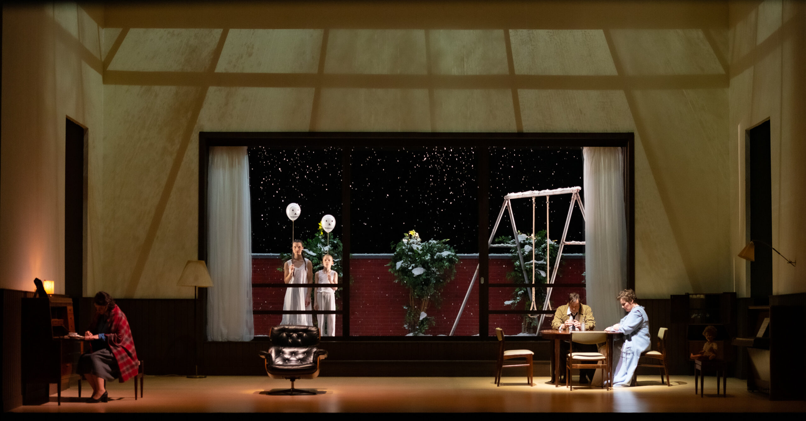 Le très beau décor unique imaginé par Dominique Pitoiset est celui d'un intérieur meublé « vintage » ouvert sur une grande baie vitrée avec vue sur jardin sous la neige, et surplombé d'une verrière propice aux perspectives lumineuses. L'action s'y déroule efficacement mais aussi très classiquement, les zones d'ombres de l'opéra restant à charge du spectateur. Bien que très ductile, dans sa volonté de faire défiler les divers moments d'une journée, le jeu d'orgues, en revanche peu tenté par la nuit, reste également trop peu aventureux : la lumière naissant de l'obscurité, un noir total aurait, par exemple, rendu plus saisissant les deux fins d'actes, l'une et l'autre d'un pragmatisme sans choc esthétique. La très bonne idée du journal intime de la Gouvernante, dont l'écriture récurrente balise l'action, aurait pu en boucler la boucle, si elle n'avait pas été progressivement délaissée. Ce Tour d'écrou dijonnais reste néanmoins une expérience forte, d'autant qu'il s'avère entièrement dévoué à la virtuosité musicale de Benjamin Britten.